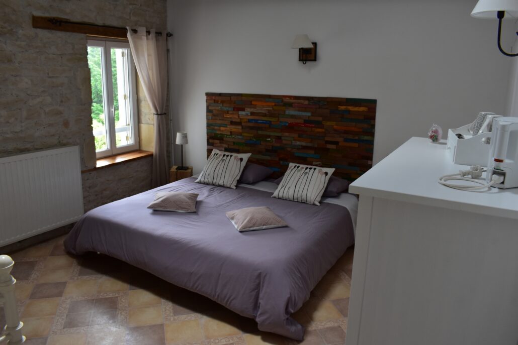 Chambre double spacieuse parfaite pour un couple. Elle possède une salle d’eau ainsi qu’un WC séparé.